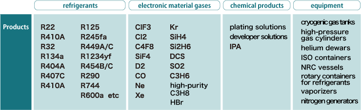 We own containers for various gases and can supply them to countries worldwide.